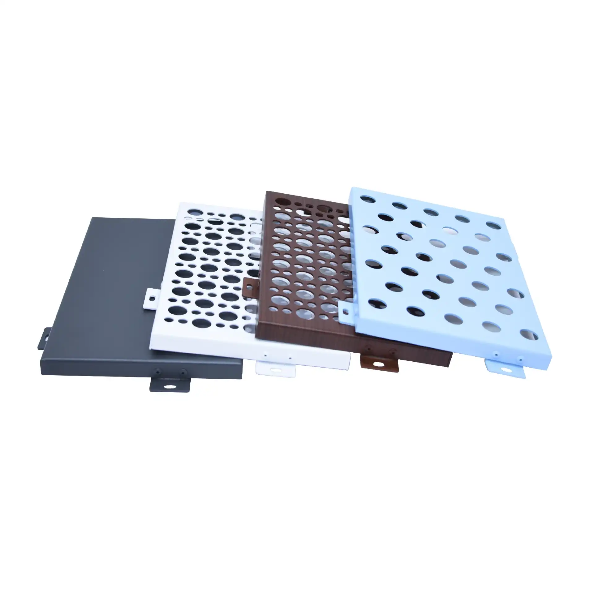 Preparation Work: Check the quality of the aluminum panels, confirm that the specifications, colors, and surface conditions meet the design requirements. Prepare installation tools (drill, screwdriver, level, tape measure, etc.) and accessories (brackets, screws, sealants, etc.). Clean the base wall to ensure it is flat, dry, and free of debris.